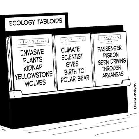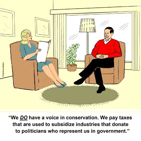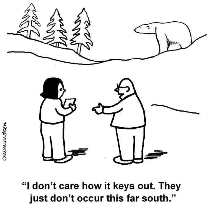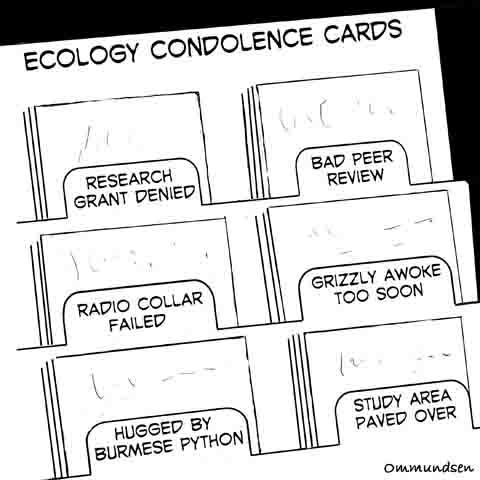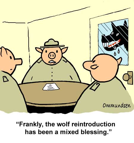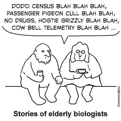 Peter Ommundsen studied wildlife biology at the University of British Columbia and was employed for 32 years with the wildlife and environmental science programs at Selkirk College. His first cartoon was published in 1978 and his cartoons have appeared in magazines, newsletters, training manuals, and textbooks, and are used in presentations by educators and by state and federal wildlife personnel. |